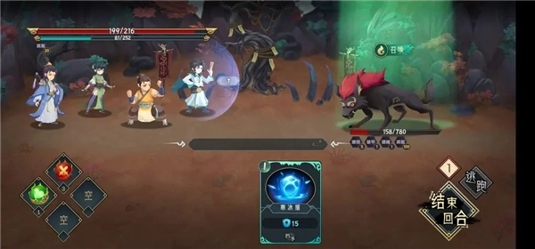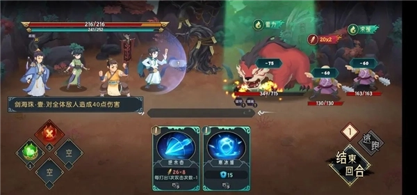 4.将凌白鹭的技能打光,中间抽空在水系灵气时把聂如嫣逆水击,ps技能符合条件处于增强状态会发光。