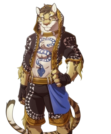 是百步蛇王(死者之主)艾里里安的手下,因为台北的一场原住民祭灵表演,带著死者灵魂前来观剧。在家有大猫故事中他正好遇到在帮忙的主角,发现主角有通灵能力,便想拉拢主角来帮忙处理让他烦恼已久的原住民问题。性格单纯,做事常常没想清楚就做到底,但是非常认真。不熟悉汉语而不善言词,但其实是个很感性的人。