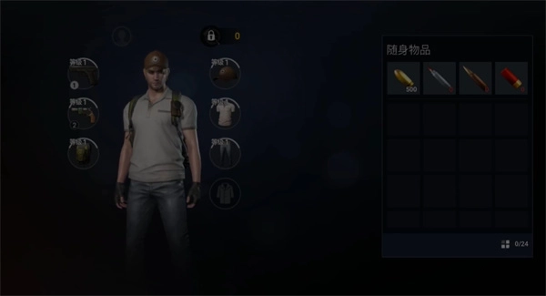 3、左下角有一个背包按键,打开后可以看到很多的物品都在其中,比如手枪,可以直接装备一下。