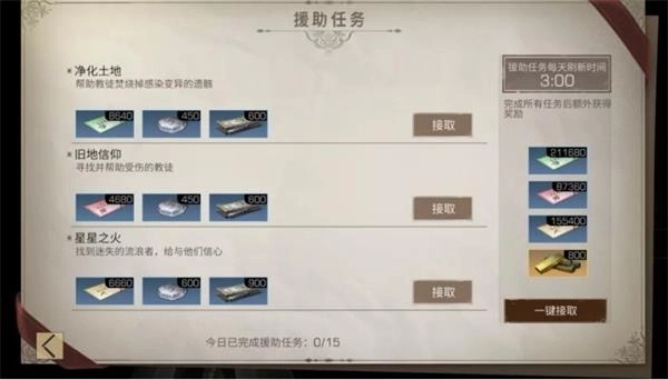 明日大陆事务繁杂各地都存在着需要幸存者协助的NPC,根据地图上的标记,找到援助任务发起人接取任务,完成任务后会获得大量熟练度奖励,幸存者可以通过“日程——日常事务——地图援助任务”,查看可援助任务的进度(庄园等级越高,可接取援助任务的数量越多)。