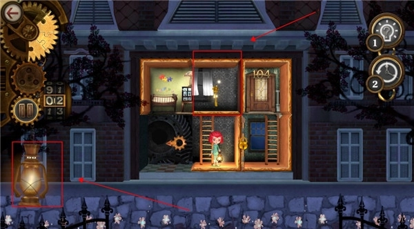 5、部分方块房子的背景呈现灰色,这意味着房子的位置出现了偏移,我们得把它调整到正确位置才能继续推进,长按提灯就能检查房子是否已经摆正。