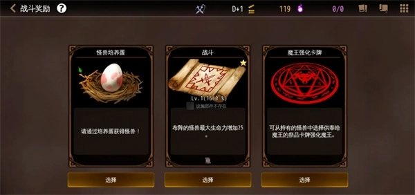 四、在布置怪兽助手的时候一定要选择星数高的上场,如果星数都很低的话那么你在胜利时,奖励选择里有合成卡牌或者强化卡牌的话一定要选择。