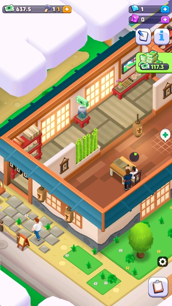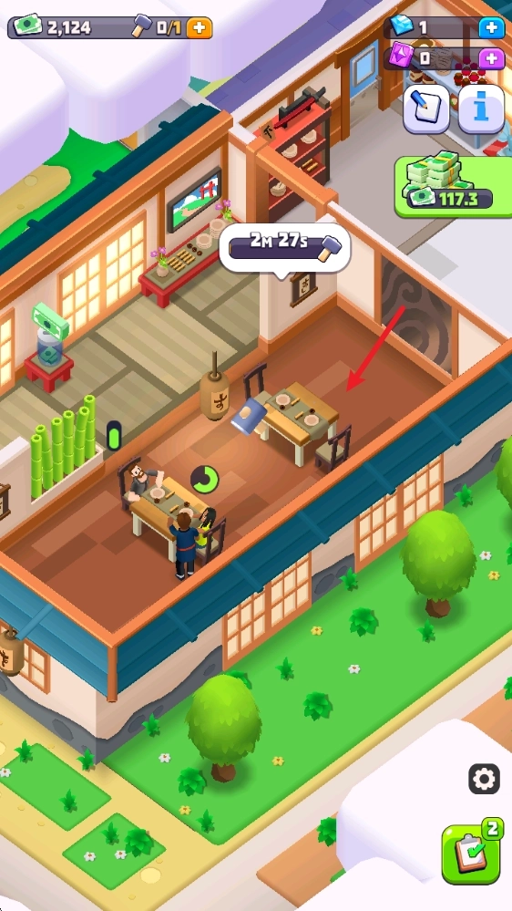 1、通过不断升级店铺来解锁更多美味的寿司,并招募更多员工、升级设备来提高效率,带来更高的收益。