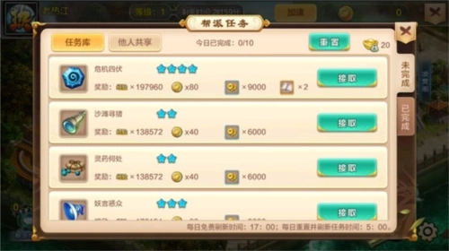 游戏前期系统会引导玩家加入帮派,成为帮派成员后,就可以在帮派的征讨堂领取帮派任务,帮派任务通常比较简单,杀小怪跑腿送信,经验也比较丰厚,还有一些小钱可以拿。