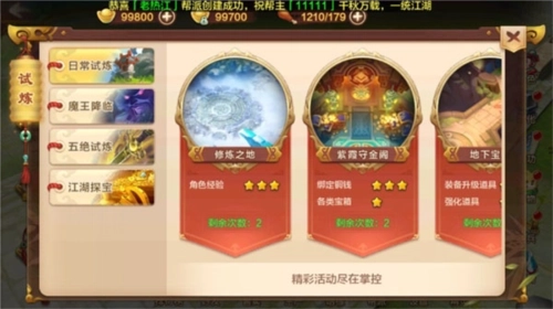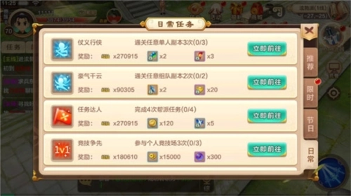 在升级的过程中,任务栏会有活动任务的引导,玩家只需要按步骤进行完成即可,完成后即可进入活动副本,活动副本不同奖励不同,而经验活动副本任务在修炼之地,完成后可以获得超量经验。