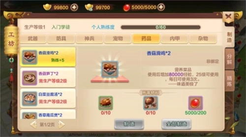 生产的补给品都可以获得额定经验值,但有一定的使用次数和等级限制,不过胜在积少成多,还可以提升生产等级,为日后自己打造极品装备做铺垫。