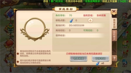 理论上来说在合适的刷怪点挂机可以获得比离线修炼更多的经验,但是不排除刷挂点被抢,人被击杀的情况,不过也不用担心,玩家死后将自动进入离线修炼状态,不会有任何损失。