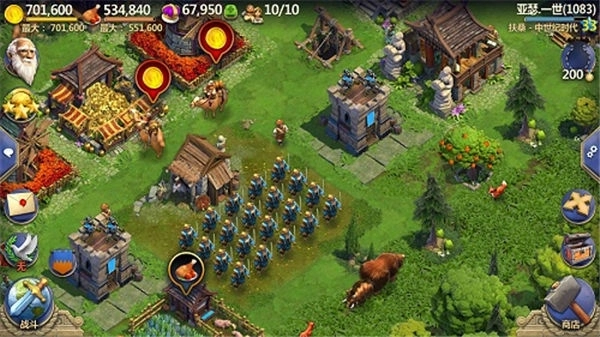 诸葛弩兵、近卫骑士、花郎射手,扶桑武士特等色兵种等你检阅指挥。各色战术配合,战争策略布局,快速摧毁,争夺资源获得胜利!更有全面战争玩法开启超大型团战PVP新时代!守卫你的文明,占领争夺敌对文明。世界即是故乡,缔造属于你的传说!