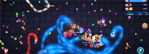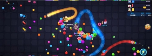 游戏里经常出现群蛇混战的局面,你可以跟随一条大蛇的尾巴前进。等大蛇死掉后立马吃掉尸体变成的大糖果。