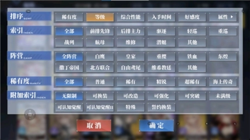 ②船坞:可以理解为角色/卡包,所有抽到的舰娘都会在里面;