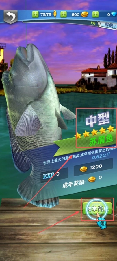 2、跟着新手教程学习基本操作,成功钓到第一条鱼完成入门。