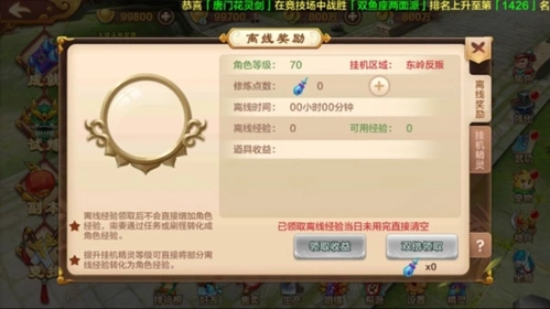 理论上来说在合适的刷怪点挂机可以获得比离线修炼更多的经验,但是不排除刷挂点被抢,人被击杀的情况,不过也不用担心,玩家死后将自动进入离线修炼状态,不会有任何损失。