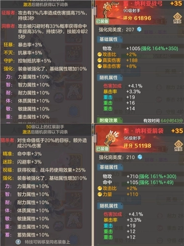 [2].橙色的属性根据职业玩法可以选择暴击率百分比,抗暴率百分比,或者基础属性转换蓄势重击属性。