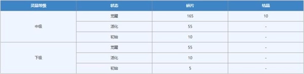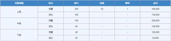 不同等级的灵晶在激活和觉醒时消耗的资源不同。灵晶结合必须在猫神神社进行操作。