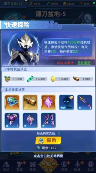 2、前往探险副本上阵英雄通过战斗获得升级经验