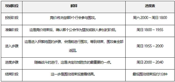 -周日20:00攻城战正式开始,攻城战队从此时起不再返回。