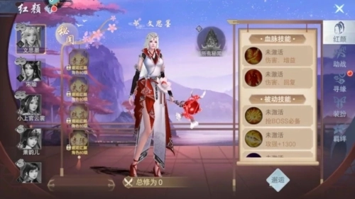 血脉提升到一定等级可以对红颜的出战技能和被动技能升级