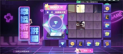 神宫涂谋不轨的幸运祈福拼图活动中,通过收集心动喷漆完成拼图,每次完成拼图可以获得冒险大奖,也更新冒险大奖的轮次,每轮开始之前可以设定一个完成拼图之后的目标,也就是冒险大奖,到第八轮的时候冒险大奖的奖池中就有神宫有咲了。可以设置神宫为冒险大奖奖品,然后完成拼图就可以获得啦。