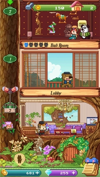 游戏玩法需要你进货收货和聘用小动物工作加烦死人的纯手动人力电梯外,还可以根据你自己的喜好买东西进行装饰房间。