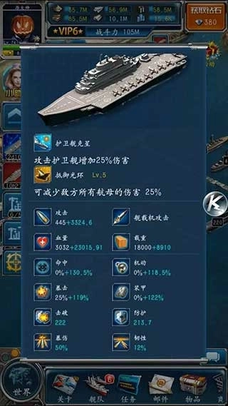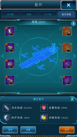 舰载机:每级增加航空母舰攻击力5%