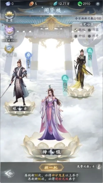4、弟子刷新如果发现目前待招募修仙者的资质普遍较低,可以通过[换一批功能]刷出新的可招募弟子人选。