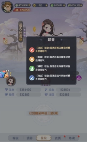 核心星级为三星和神话阶;资质加点顺序推荐灵根>体魄>寿元≥气运≥神府≥命魂