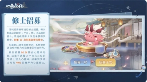 铁蛋找帮手!招募券记载着所有修士的信息,每次招募必定获得1个玄/地/天品质的修士。