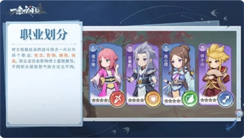 修士共有攻击、防御、辅助、突击四个职业类型,另外又有混沌、无极、太初、鸿蒙四个道源分类。