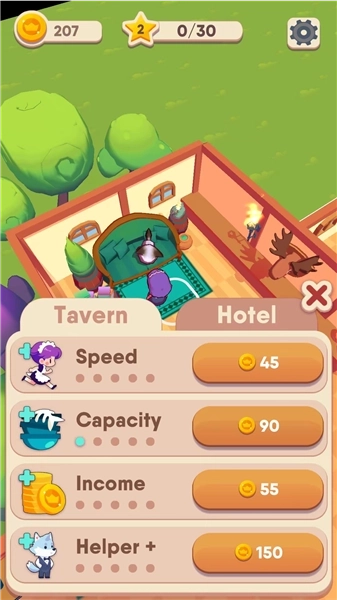 3、随着经营规模扩大,逐步解锁更多高级装修选项,如添加舞台、吧台等功能区域,为顾客提供更丰富的娱乐体验。