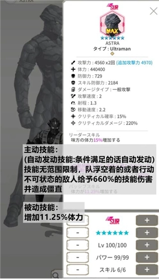 主动技能:自动发动技能条件满足的话自动发动)技能无范围限制,队浮空着的或者行动不可状态的敌人给予660%的技能伤害并造成僵直