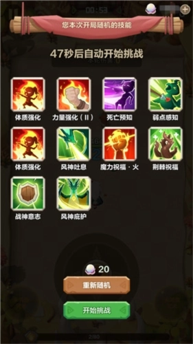 勇士每次挑战世界BOSS的技能都是随机的,如果对技能组合不满意,可以选择花费珍珠重新随机,消耗数量会逐步增加,当消耗到达100珍珠时就不会再提升了,并且随机技能并没有次数限制,勇士可以在限定时间内不断的进行重新随机直至随到满意的技能。