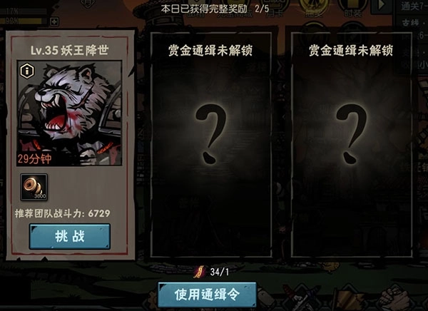 在主城界面,右边竖栏上我们可以看到赏金通缉的按钮,如果有小红点就证明当前有通缉任务,如果没有,那么我们可以自己刷新通缉任务,需要通缉令1个即可。
