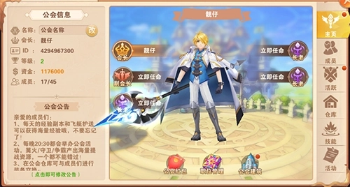 游戏中单枪匹马总是孤独且寂寞的,成群结队制霸公会才是王道。公会主页可查看公会信息及公会长老以上职位的角色名称。公会成员参与日常活动可以累积公会活跃度,活跃度达到目标后可领取公会薪酬哦。