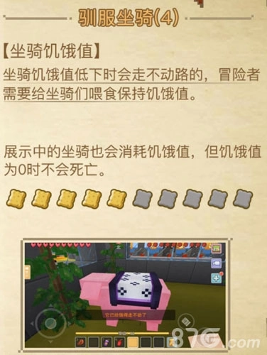 注意,坐骑和人一样也是有饥饿值的,饥饿值低下的话就会走不动路,所以玩家们需要定时给坐骑们喂养食物使其饥饿值保持在一个健康的状态哟。