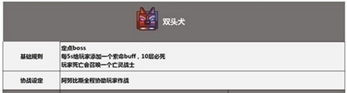 (3)第二阶段:火元素死亡之后狗落地,骑士抗住,奶奶住骑士,输出和奶站阿奴附近,当有人身上刷出白圈时,此人向骑士身边集合,其他人向此人身边集合,白圈可以清理索命层数,要保证所有人索命全部清理掉。当刷出冰/火幽灵时,一个射手拉住幽灵(不要被幽灵打到),拉到骑士的背后,双头狗每四次普攻喷一次冰/火,会杀死幽灵。