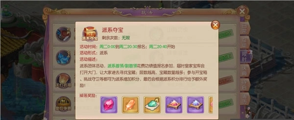 进入夺宝活动的途径有两种:从玩法中找到限时玩法,就可以看到派系夺宝的活动入口;从社交派系中进入派系活动就可以找到夺宝入口。夺宝是限时的活动,只有每周的周二才会开启。进行夺宝活动的时间虽然是固定的,但是对于玩家来说已经足够了。