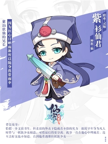 【背景传记】出于想要与相恋的妖族少女长相厮守而修炼成仙,可惜仙妖殊途,不能为世俗所容,被逼无奈只能分开,但正所谓有缘千里来相会,紫衫仙君对爱人的挂念并未随岁月的流失而有丝毫的减退……