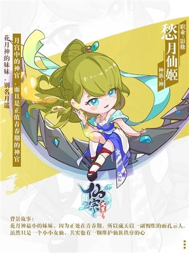 【背景传记】花月神最小的妹妹,因为正处在青春期,所以成天以一副惆怅面孔示人。虽然只是一个小小女仙,其实也有一颗匡扶正义的心。