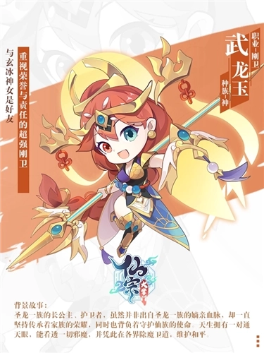 【背景传记】由于肩负圣龙一族的使命,由于特殊的身份和能力,武龙玉只能舍弃自己对红妆的喜爱,一直坚守岗位,负责守护整个神界要塞。