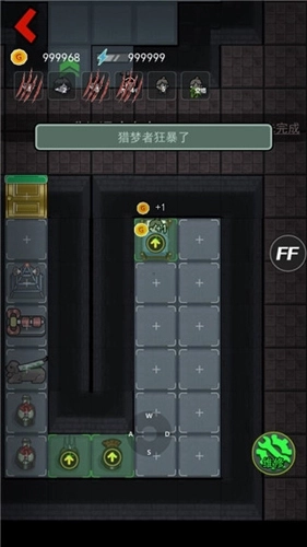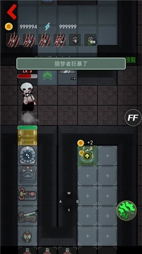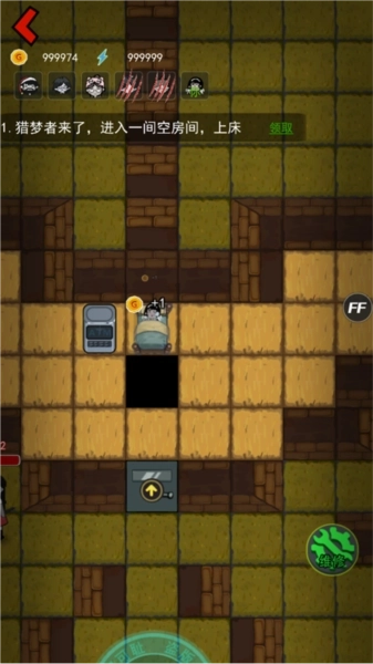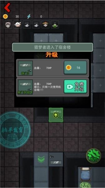 1、猎梦者开局等待30秒后可以出发行动,走到门前就能自动挠门,除了门之外,建筑如炮塔、冰箱等都可以摧毁来提升等级。