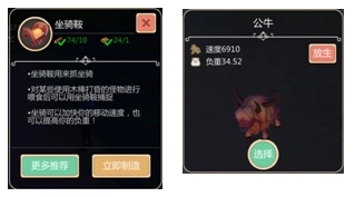 也通过捕捉奶牛在家园养殖获得牛奶,使用奶牛变身精华,身上带着饲料和编织筐可以在短时间内获得牛奶。