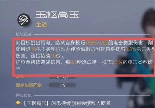 教官的被动能够充分加强主C星期三,且玉枢高压可以可以削弱敌方抗性并附带自身技巧加成的电击属性链接伤害。