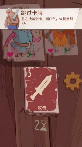 2、没有冒险是不完整的,以杀死一些怪物在你的方式。在战斗中,你将从你的异能牌组中抽牌。当你抽牌的时候,你可以向右滑动来玩这张牌,或者向左滑动来跳过一轮来恢复体力