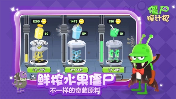 僵尸榨汁机夏日清凉版是一款专属于假日的特殊的游戏版本!很多时候我们会特别喜欢某一个版本,因为在这个版本中我们可以享受到游戏真的乐趣,玩起来也是让人根本就停不下来的!将经营与冒险的元素结合起来,形成了一种有趣的玩法。游戏内,你所扮演的外星人经营了一家果汁店,需要将外星球上的各类僵尸抓来帮你生产果汁。这些果汁经常脱销,所以为了维持生意,你必须不断深入野外捕获更稀有的僵尸!