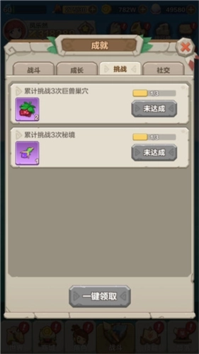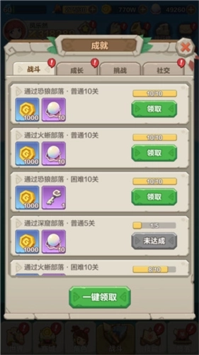 当勇者升级到2级时开启成就玩法,勇者在原始大陆冒险的时候达成一定阶段即可领取成就任务,获取丰厚奖励。