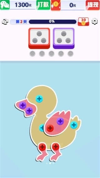 1、游戏中,每一挑战均展现多样图案,它们被五彩斑斓的螺丝紧紧相连,你的任务是将这些螺丝一一拆解。