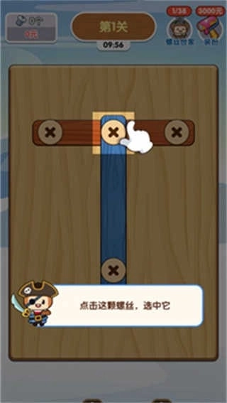 1、螺丝专家中每一关都会出现各种被螺丝钉在一起的图案,你要将这些螺丝全部解开。