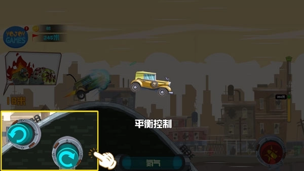 然而前方的生化怪物的数量越来越多,常言道:双拳难敌四手,再厉害的武器也无法抵御密集阵般的生化僵尸群。兵法有云:三十六计走为上计。是时候展示你的绝技了!当载具行驶到每个坡道并向上飞起的时候,对,就在这个时候,你可以通过长按左或右操控键,让载具做后空翻或前空翻特技(在空中连续做特技将会有惊喜哦,但是要记住正确着地的姿势,否则载具会爆炸的哦)。