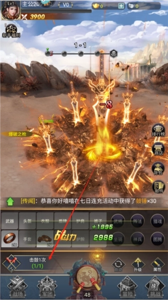 雷霆空袭与传统开宝箱游戏玩法类似,玩家通过击鼓来获得装备