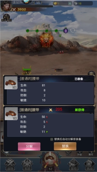 获得新的装备之后,可以将等级低的分解